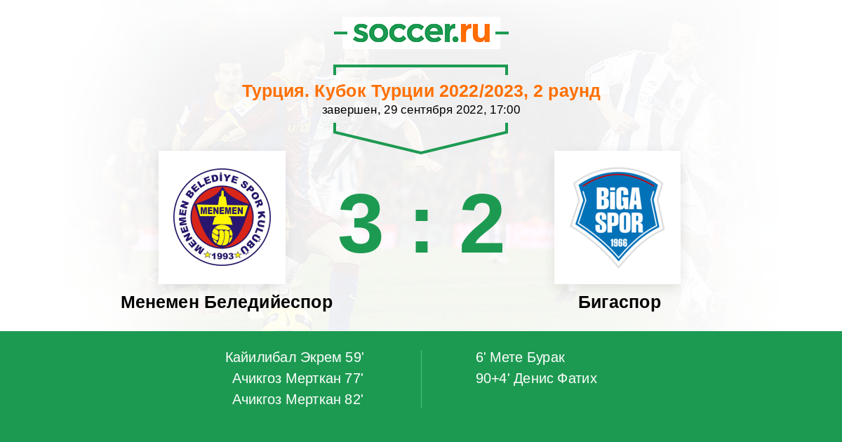 Протокол матча Менемен Беледийеспор против Бигаспор