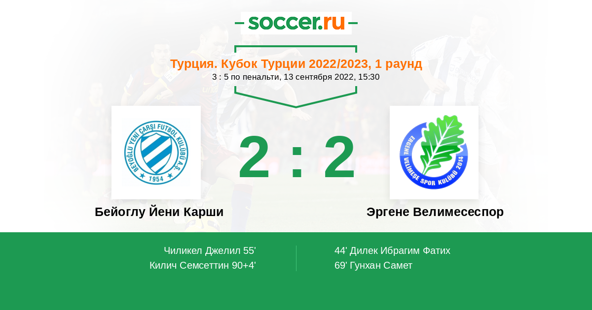 Протокол матча Бейоглу Йени Карши против Эргене Велимесеспор