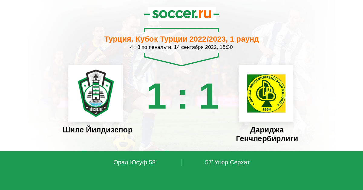 Протокол матча Шиле Йилдизспор против Дариджа Генчлербирлиги