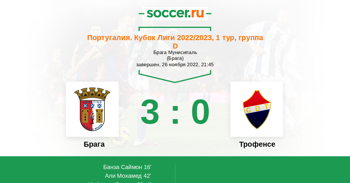 Протокол матча Брага против Трофенсе