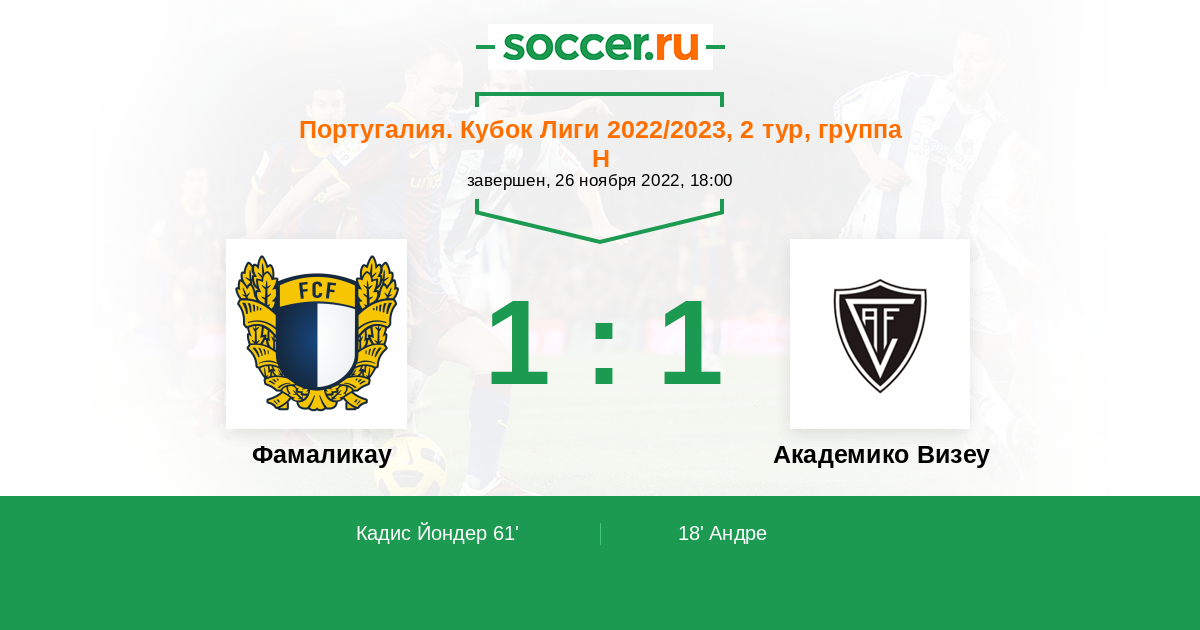 Протокол матча Фамаликау против Академико Визеу