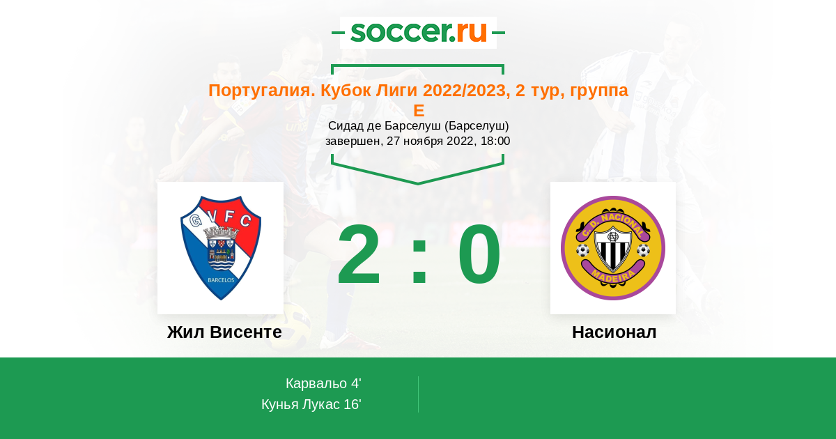 Протокол матча Жил Висенте против Насионал
