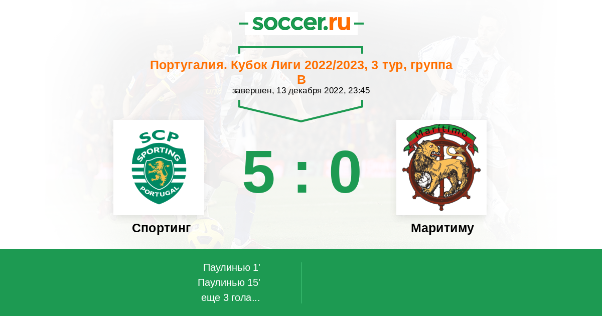 1' (1:0) Паулинью (20) (Гомес Артур (33))