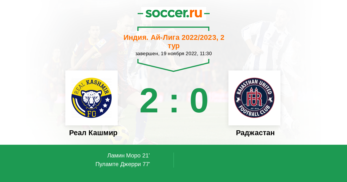 Протокол матча Реал Кашмир против Раджастан
