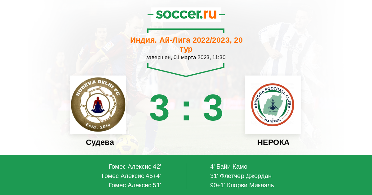 Протокол матча Судева против НЕРОКА