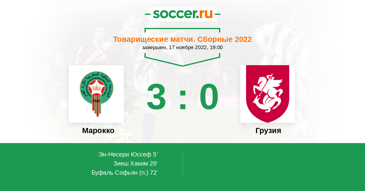 Протокол матча Марокко против Грузия