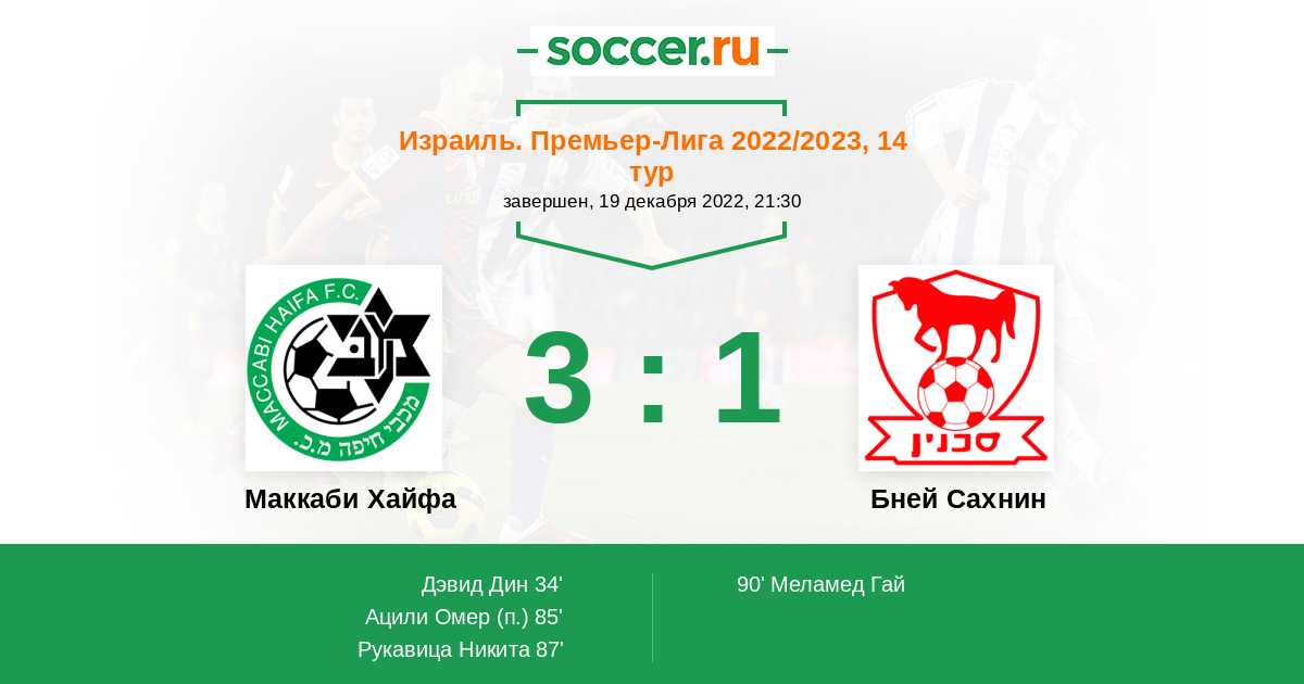 Протокол матча Маккаби Хайфа против Бней Сахнин