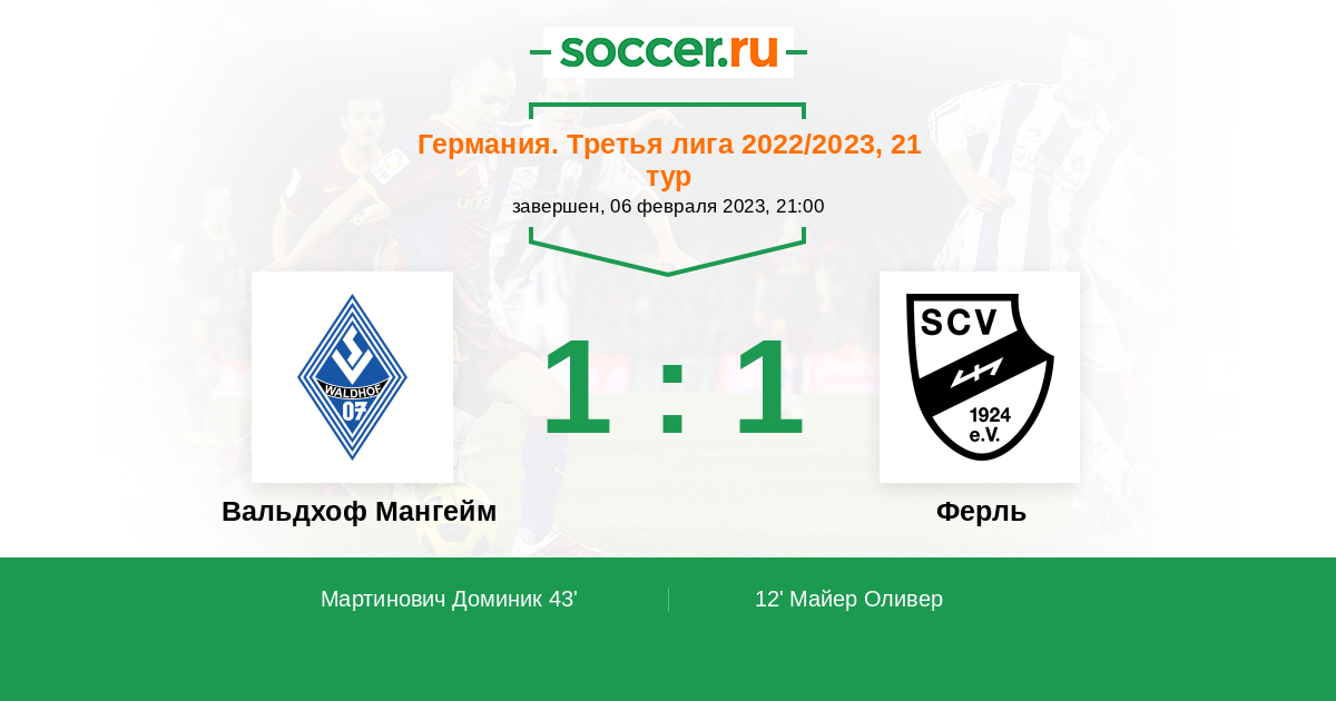 Протокол матча Вальдхоф Мангейм против Ферль