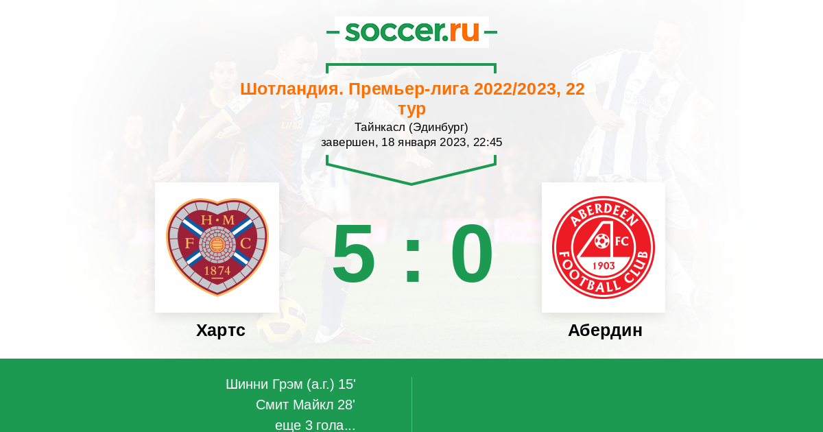 Протокол матча Хартс против Абердин