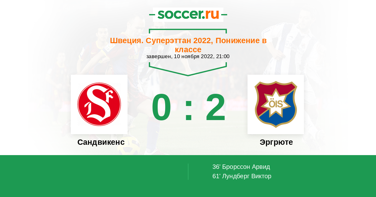 Протокол матча Сандвикенс против Эргрюте