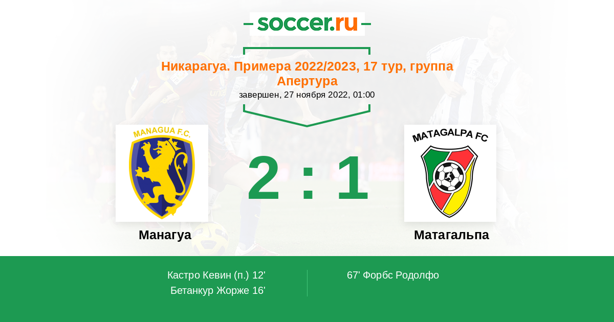 Протокол матча Манагуа против Матагальпа