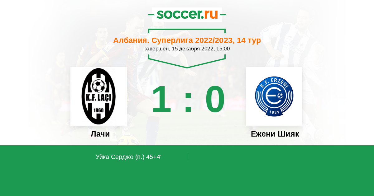 Протокол матча Лачи против Эрзени Шияк