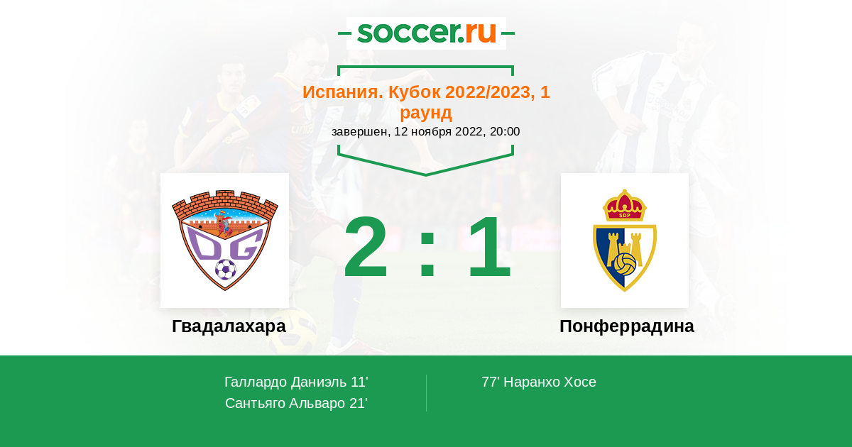 Протокол матча Гвадалахара против Понферрадина