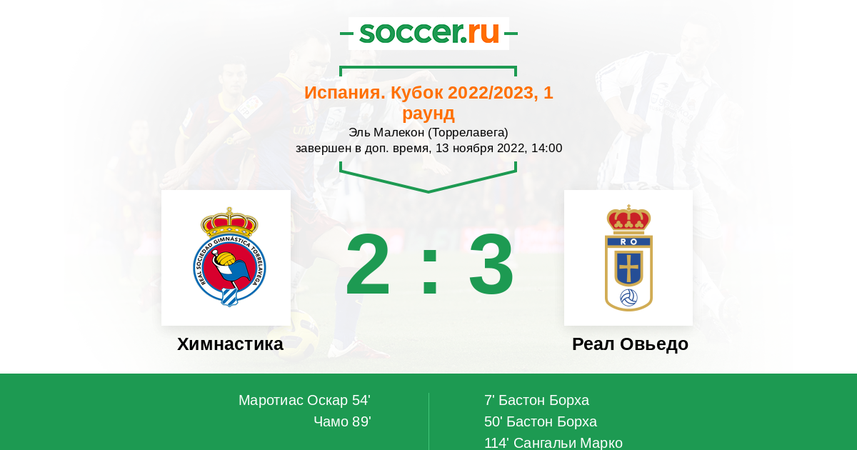 Протокол матча Химнастика против Реал Овьедо