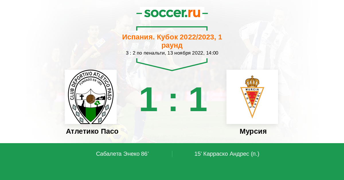 Протокол матча Атлетико Пасо против Мурсия