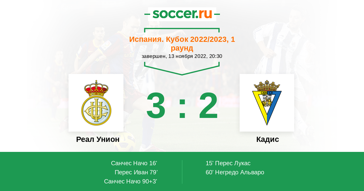 Протокол матча Реал Унион против Кадис