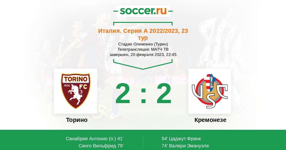 Молодцы Кремонезе, здорово играют. Какой голешник вколотил Валери, пушечный удар! Близки игроки Кремонезе к тому, чтобы одержать свою первую победу в чемпионате. У Торино во втором тайме совсем ничего не получается и Миранчук на поле растворился.
