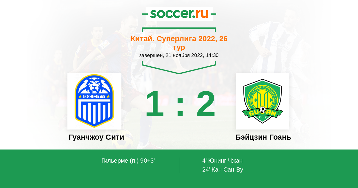 Протокол матча Гуанчжоу Сити против Бэйцзин Гоань