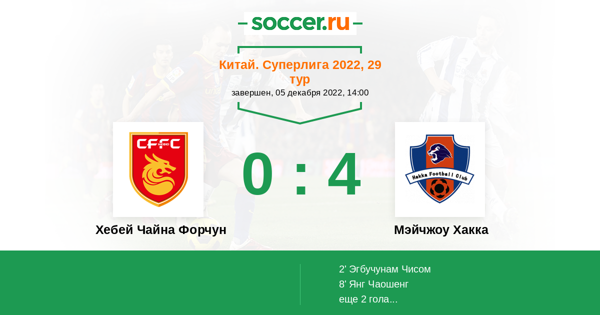 Протокол матча Хебей Чайна Форчун против Мэйчжоу Хакка