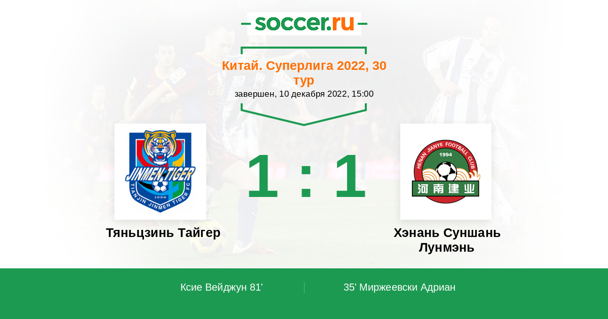 Протокол матча Тяньцзинь Тайгер против Хэнань Суншань Лунмэнь