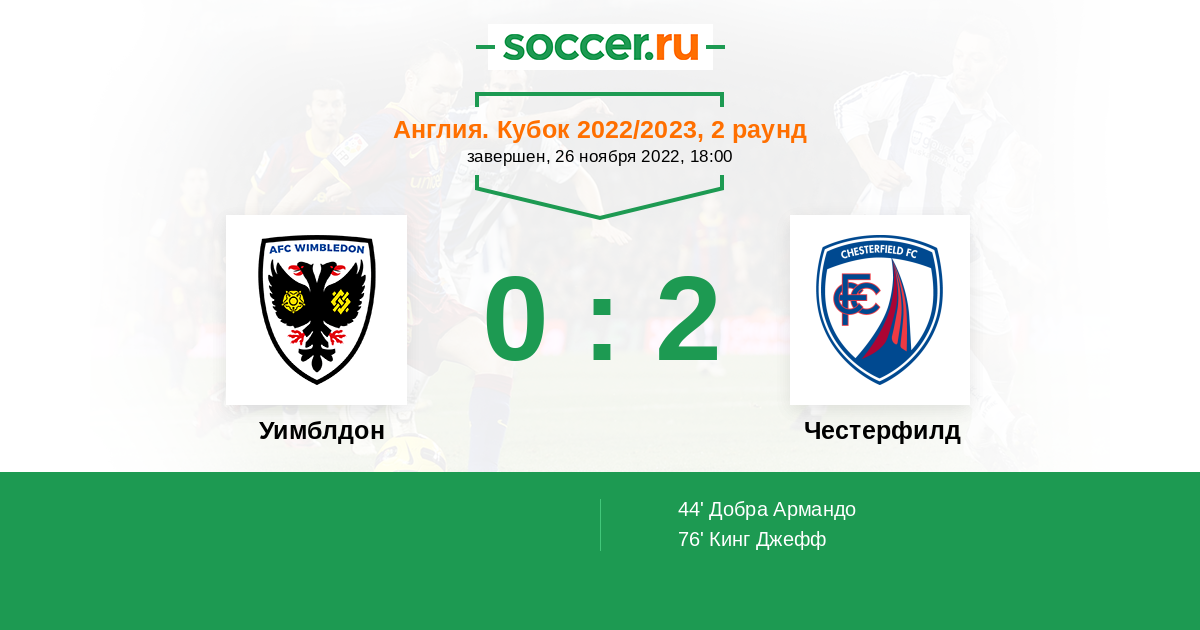 44' (0:1) Добра Армандо (17) (Кигли Джо (27))