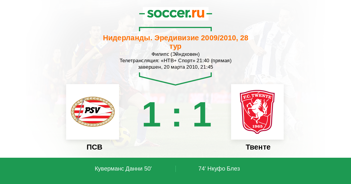 Протокол матча ПСВ против Твенте