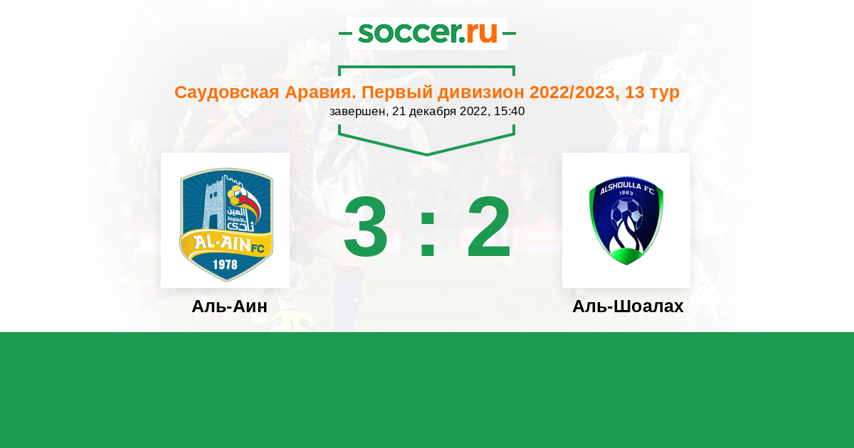 История матча Аль-Аин против Аль-Шоалах