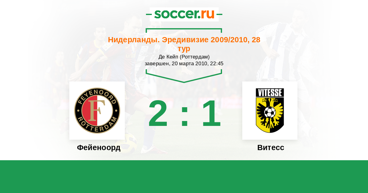Нидерланды. Эредивизи 31.03.2010 Фейеноорд Логотип футбольный клуб Фейеноорд (Роттердам) 2:1 Логотип футбольный клуб Витесс (Арнем) Витесс