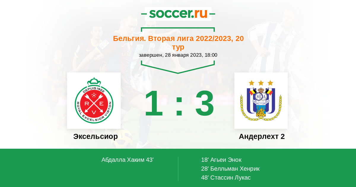 Протокол матча Эксельсиор против Андерлехт 2
