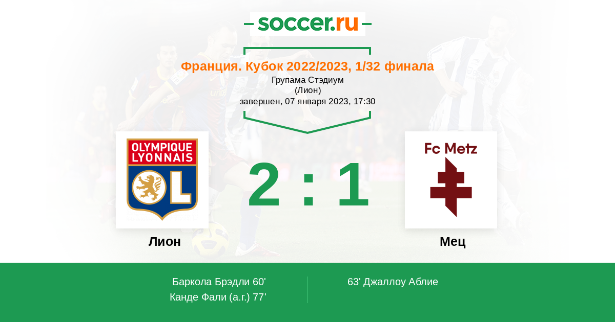 Протокол матча Лион против Мец