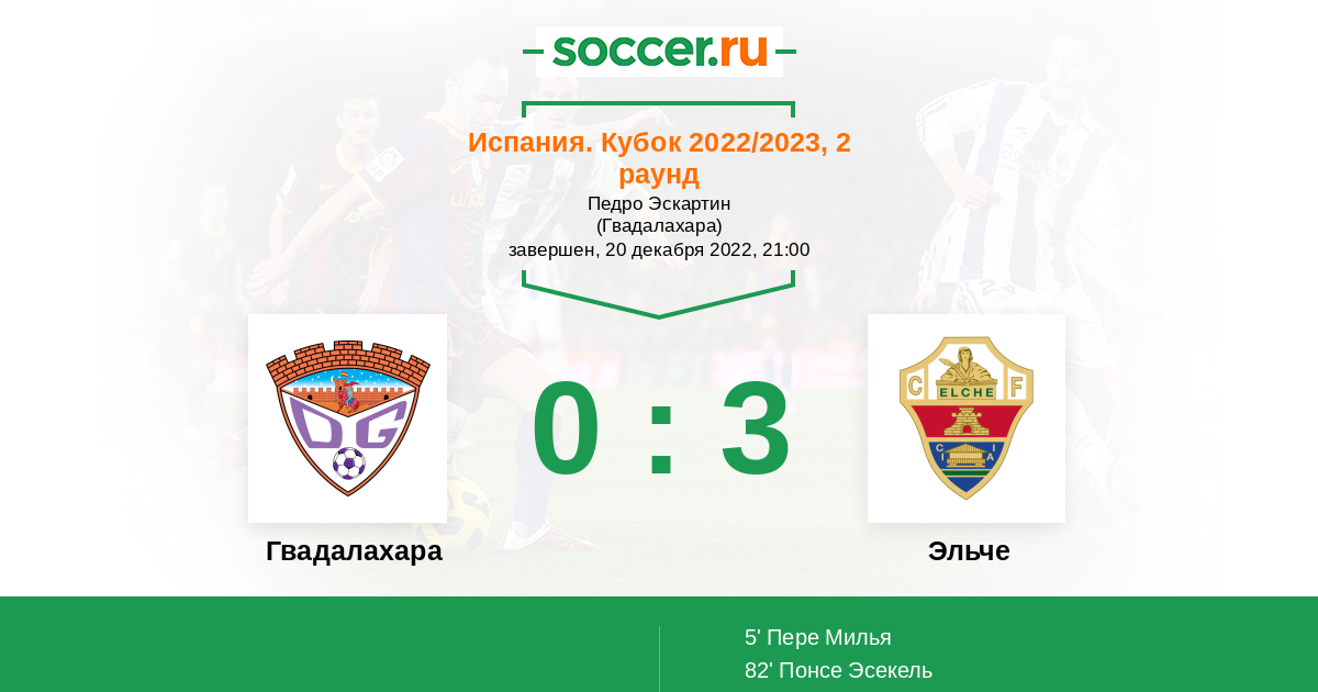 Протокол матча Гвадалахара против Эльче
