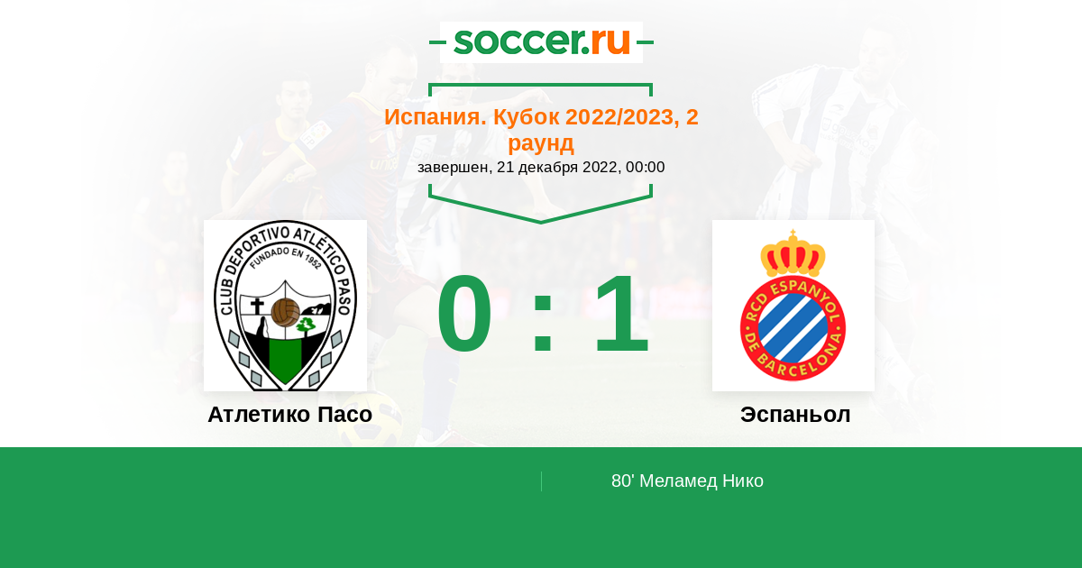 Протокол матча Атлетико Пасо против Эспаньол