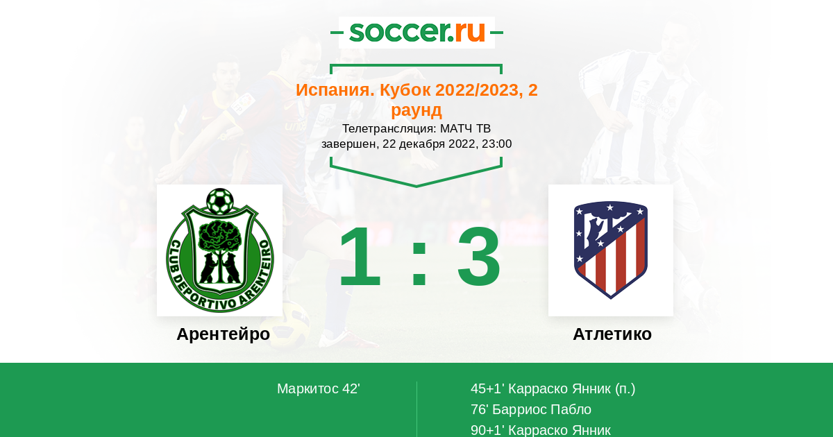 Атлетико совсем никакой. Играет основным составом и не может клуб из четвертой лиги обыграть. Точнее сказать не играет, а мучается. Арентейро даже поинтересней смотрится.