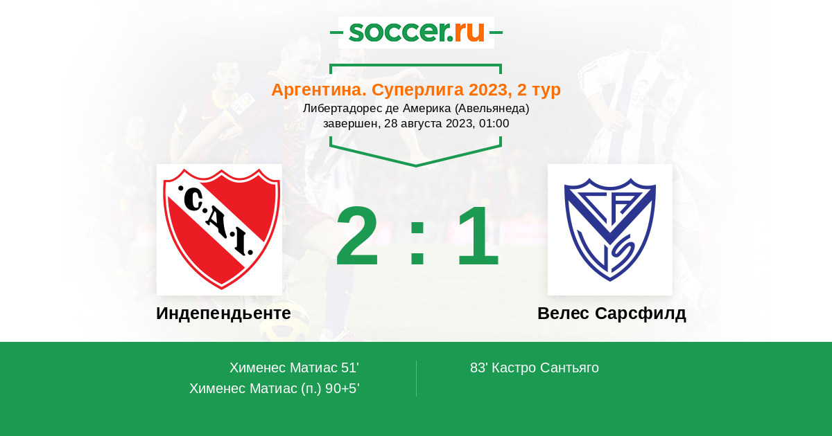 Протокол матча Индепендьенте против Велес Сарсфилд