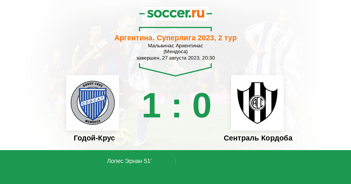 Протокол матча Годой-Крус против Сентраль Кордоба