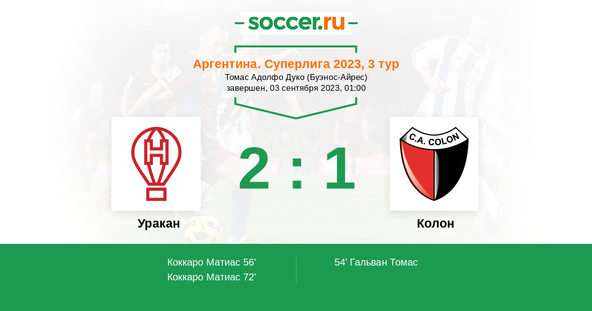 Протокол матча Уракан против Колон