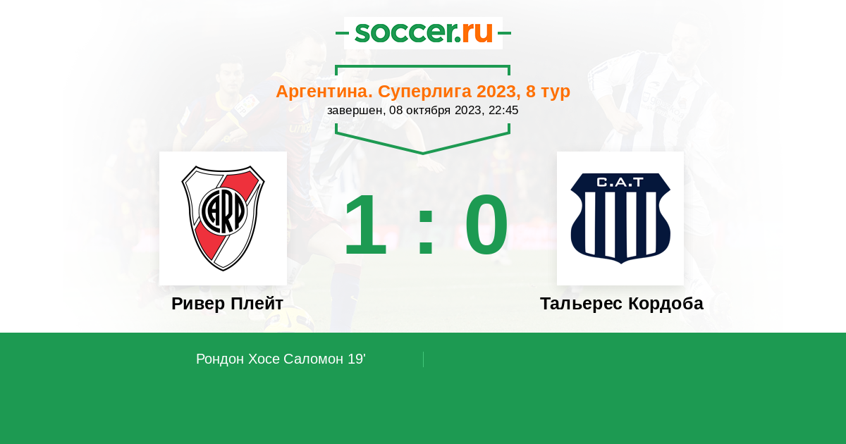 Протокол матча Ривер Плейт против Тальерес Кордоба