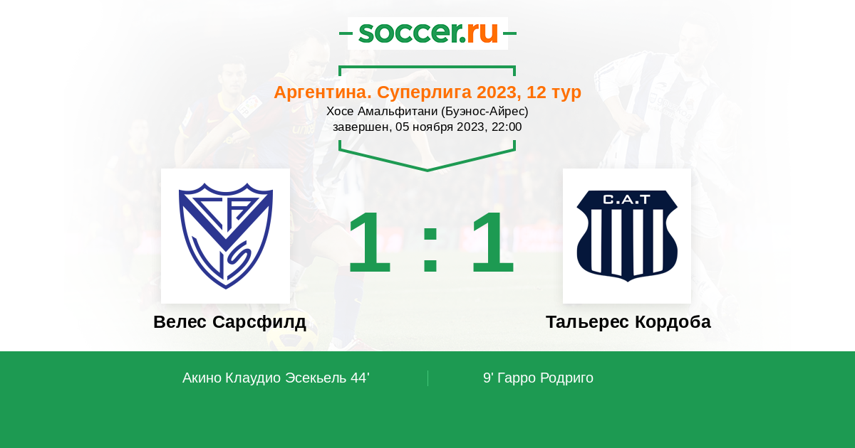 Протокол матча Велес Сарсфилд против Тальерес Кордоба
