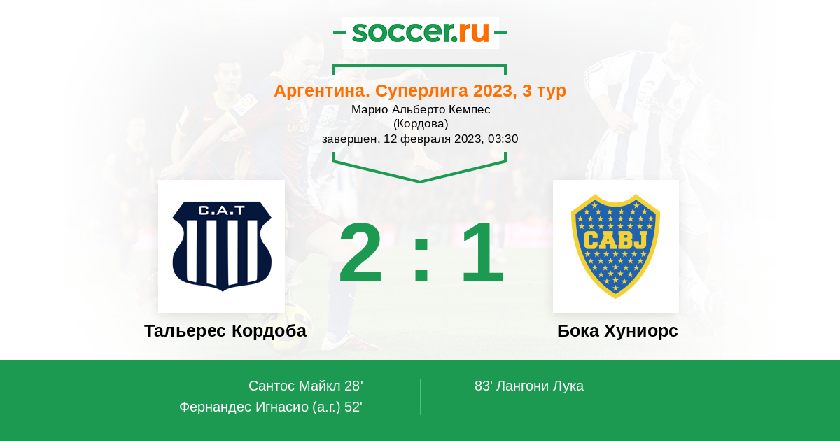 Протокол матча Тальерес Кордоба против Бока Хуниорс