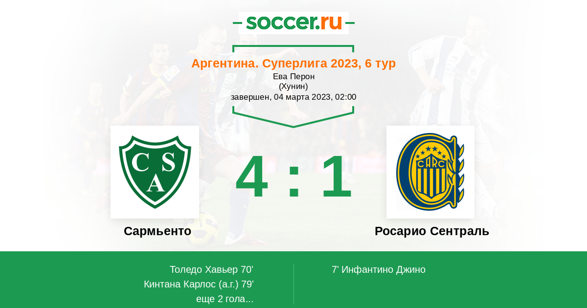 Протокол матча Сармьенто против Росарио Сентраль