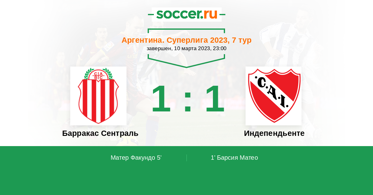 Протокол матча Барракас Сентраль против Индепендьенте