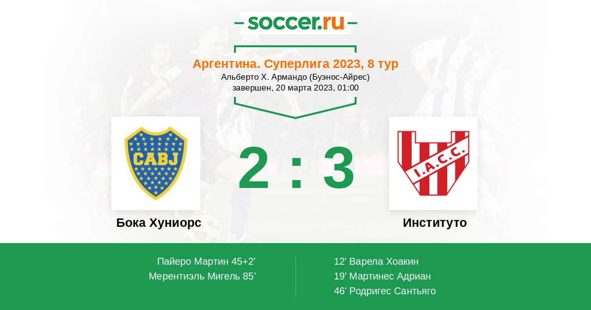 Протокол матча Бока Хуниорс против Институто