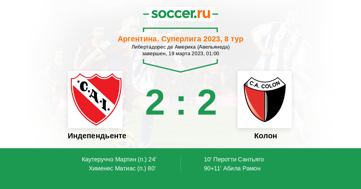 10' (0:1) Перотти Сантьяго (30) (Дельгадо Рафаэль (40))