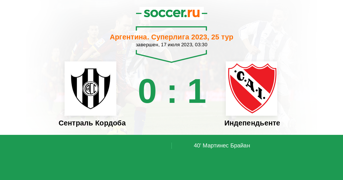 Протокол матча Сентраль Кордоба против Индепендьенте