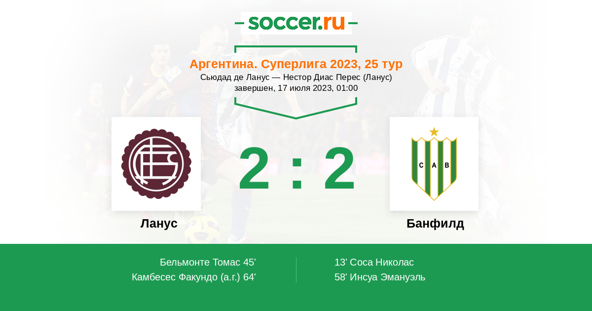 Протокол матча Ланус против Банфилд