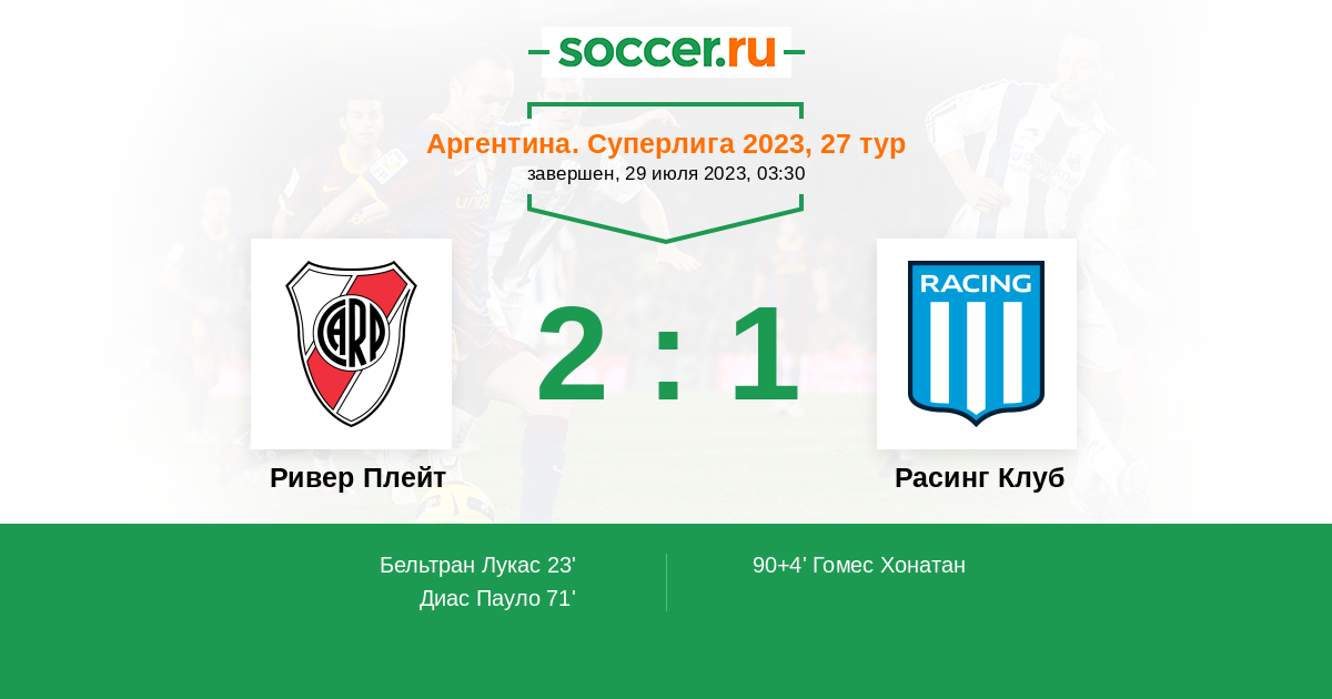 23' (1:0) Бельтран Лукас (18) (Солари Пабло (36))