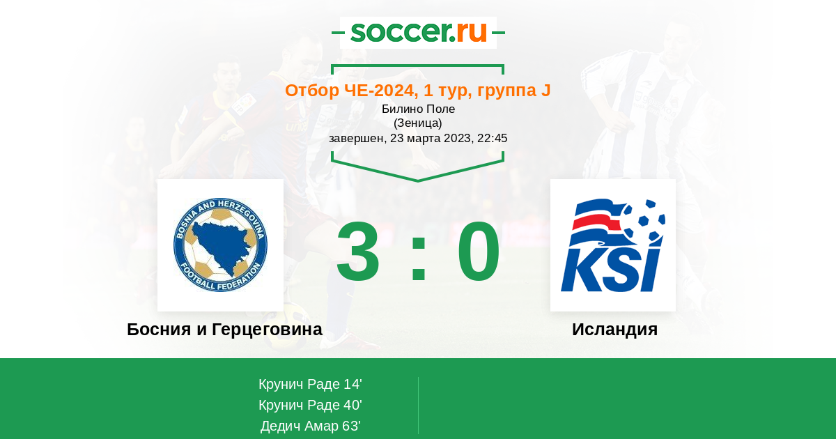 Протокол матча Босния и Герцеговина против Исландия