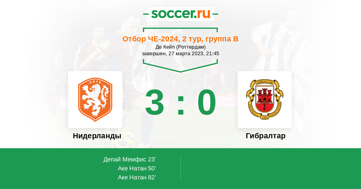 Протокол матча Нидерланды против Гибралтар