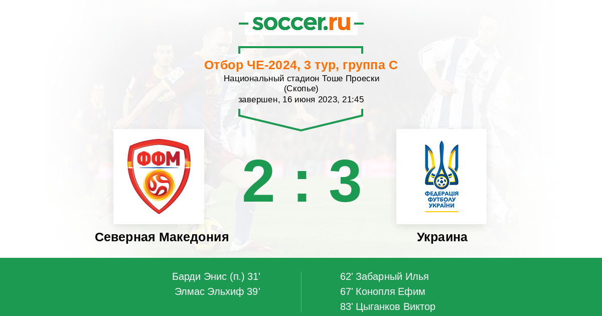 Протокол матча Северная Македония против Украина