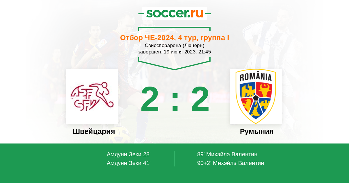 Протокол матча Швейцария против Румыния